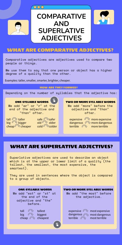 Examples: taller, smaller, smarter, brighter, cheaper.