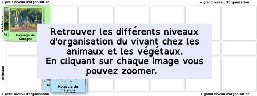 Retrouver les différents niveaux d'organisation du vivant chez les animaux et les végétaux. En cliquant sur chaque image vous pouvez zoomer.