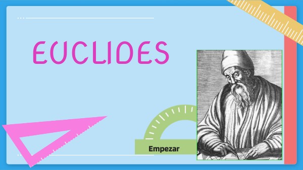 Euclides fue un matemático histórico que escribió los Elementos y otras obras atribuidas a él. Euclides fue el líder de un equipo de matemáticos que trabajaba en Alejandría. Todos ellos contribuyeron a escribir las obras completas de Euclides, incluso firmando los libros con el nombre de Euclides después de su muerte.