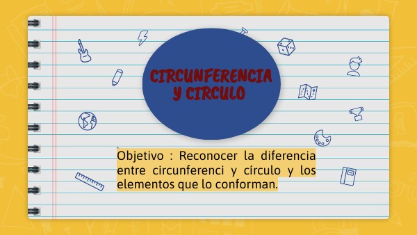 Objetivo : Reconocer la diferencia entre circunferenci y círculo y los elementos que lo conforman.