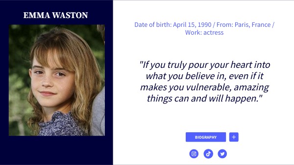 Emma Watson starred in the film "Harry Potter" and she plays Harmione Granger
