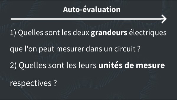 1) Quelles sont les deux grandeurs électriques que l'on peut mesurer dans un circuit ?