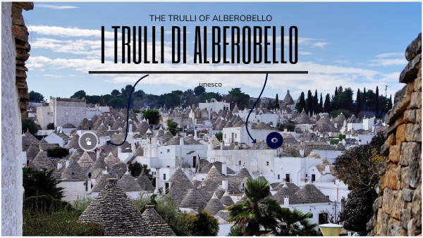 i trulli rurali sono sparsi per tutta la Valle d’Itria, la massima concentrazione di esemplari meglio conservati di questa forma architettonica si trova nella cittadina di Alberobello, con più di 1500 strutture nei rioni di Monti e Aja Piccola. I trulli sono delle tradizionali capanne in pietra a secco con il tetto composto da lastre incastrate a secco.