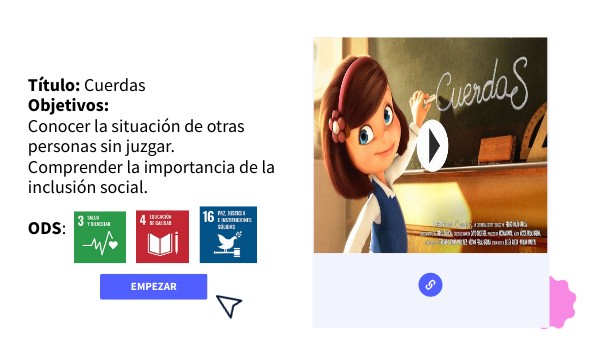 Título: Cuerdas Objetivos: Conocer la situación de otras personas sin juzgar. Comprender la importancia de la inclusión social. ODS: