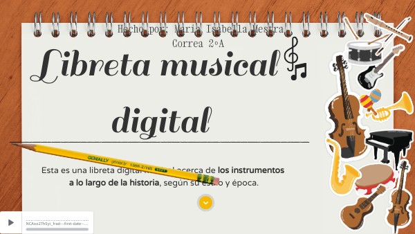 Esta es una libreta digital musical acerca de los instrumentos a lo largo de la historia, según su estilo y época.