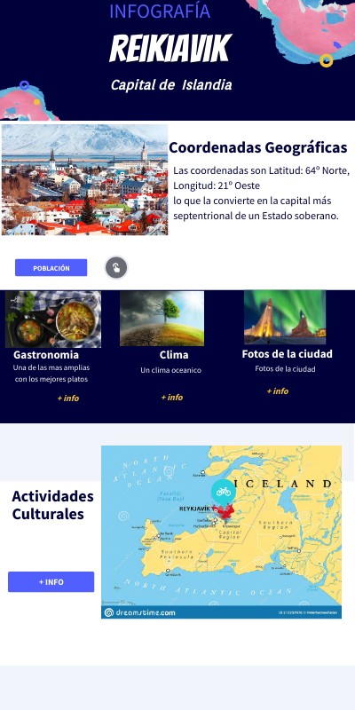 Las coordenadas son Latitud: 64º Norte, Longitud: 21º Oeste lo que la convierte en la capital más septentrional de un Estado soberano.