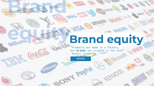 Brand equity es el valor adicional que agrega una marca a la oferta de un producto. Lo determina la percepción y la experiencia del cliente con la marca. Si la gente piensa bien en una marca, tiene un valor de marca positivo, y puede cobrar más/ vender más.