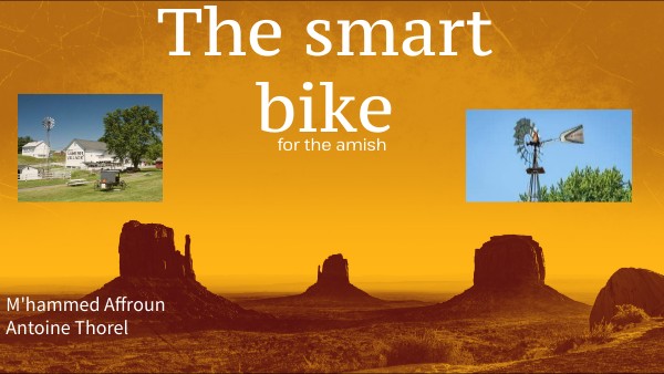 we initially thought of a simple bike to promote speed, and which compared to a horse requires much less maintenance and requires less storage space.with a battery system stored under the seat and which thanks to an energy converter which will transform the energy produced by the Amish while pedaling into electricity the battery can be recovered by providing energy to store