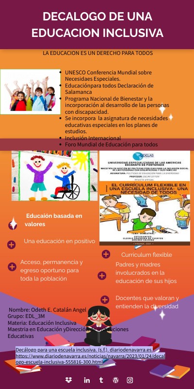 Nombre: Odeth E. Catalán Angel Grupo: EDL_3M Materia: Educación Inclusiva Maestria en Educación yDirección de Instituciones Educativas