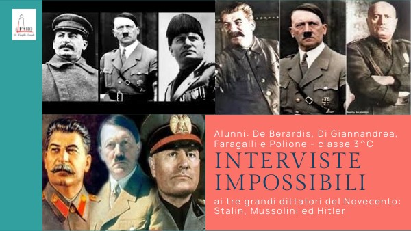 Interviste Impossibili ai tre grandi dittatori del Novecento: Stalin, Mussolini ed Hitler. Presentazione a cura degli alunni De Berardis, Di Giannandrea, Faragalli e Polione della classe 3^C (a.s. 2023/2024).