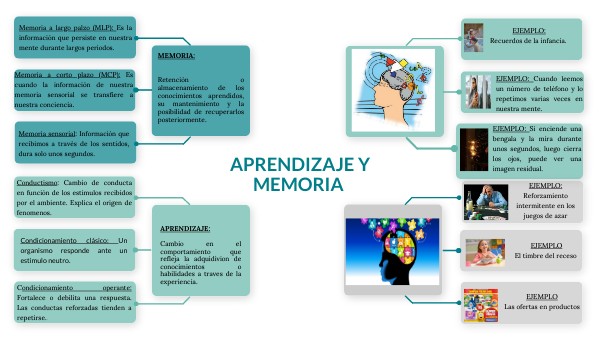 MEMORIA: Retención o almacenamiento de los conocimientos aprendidos, su mantenimiento y la posibilidad de recuperarlos posteriormente.