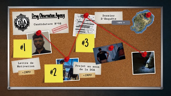 Dans le cadre de mon projet pour rejoindre l'unité DOA, mon objectif premier est de mener des enquêtes sur des dossiers confidentiels afin de traquer les criminels responsables de récidives criminelles et de les amener devant le tribunal. Je suis déterminé à contribuer à stopper l'augmentation de la criminalité qui menace notre ville chaque jour. De plus, je suis particulièrement intéressé par les enquêtes maritimes. Récemment, j'ai été informé par une source que de nombreuses organisations criminelles utilisent les voies maritimes (Cayo Perico) pour faire passer de la drogue à Los Santos. Je suis convaincu que mettre un terme à ces activités illégales contribuera grandement à assurer la sécurité de notre belle ville et à protéger ses habitants. Je suis déterminé à m'investir pleinement dans les missions qui me seront confiées, en mettant en avant mon dévouement et ma volonté de contribuer à la sécurité. Collaborer avec le LSSD DOA est pour moi une opportunité de travailler en harmonie, dans le respect mutuel et la coopération. Je suis prêt à mettre mes compétences et mon enthousiasme au service de cette collaboration, avec l'objectif commun de faire régner l'ordre et la justice dans notre ville. Mon ambition est de diriger des opérations à grande échelle. La collaboration entre unités est essentielle pour relever les défis, et je suis convaincu que ma capacité à travailler en équipe, chacun contribuera à la réussite de ces opérations.