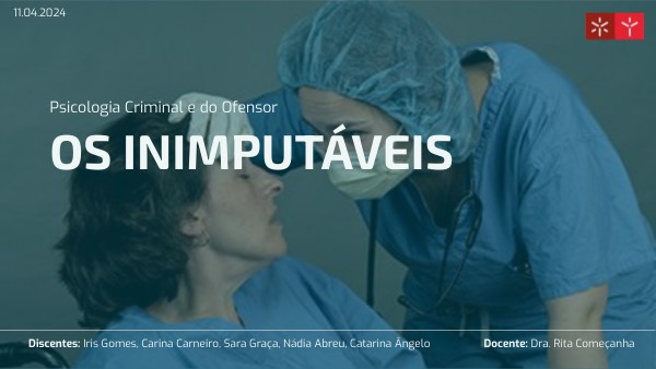 Inimputabilidade, Anomalia Psíquica e Medidas de Segurança. (n.d.). https://carlospintodeabreu.com/public/files/inimputabilidade_anomalia_psiquica_seguranca.pdf RESHAPE. (2022a, December 13). Inimputabilidade e medidas de segurança. Reshape. https://reshape.org/2022/12/13/inimputabilidade-e-medidas-de-seguranca/ Toader, E. (n.d.). INSTITUTO SUPERIOR DE CIÊNCIAS POLICIAIS E SEGURANÇA INTERNA A Inimputabilidade em razão de anomalia psíquica e a medida de segurança de internamento. https://comum.rcaap.pt/bitstream/10400.26/40406/1/Disserta%C3%A7%C3%A3o%20de%20Mestrado%20Elena%20Toader.pdf Direção-Geral da Reinserção e Serviços Prisionais (DGRSP). (2024). Website da Direção-Geral da Reinserção e Serviços Prisionais. https://dgrsp.justica.gov.pt/