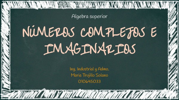 Los números complejos fueron llamados por primera ves como los números imposibles. Se los relaciona con la geometría y algebra. Los números complejos se pueden sumar y multiplicar de la misma forma que los números reales. Un número imaginario es un tipo de número que se obtiene al multiplicar un número real por la unidad imaginaria, denotada como "i".