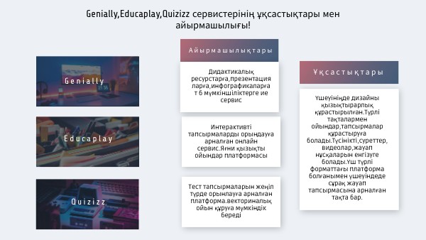 Genially,Educaplay,Quizizz сервистерінің ұқсастықтары мен айырмашылығы!