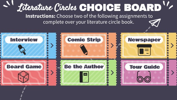 Instructions: Choose two of the following assignments to complete over your literature circle book.