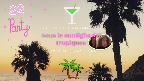 Aloha Juju, Je vais te convaincre en quelques clics que de transformer notre anniversaire en une escapade tropicale en réunissant nos amis pour une soirée inoubliable remplie de palmiers, de cocktails fruités et de musique ensoleillée est une excellente idée - une célébration doublement inoubliable !