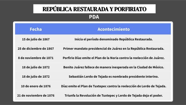 República Restaurada y Porfiriato