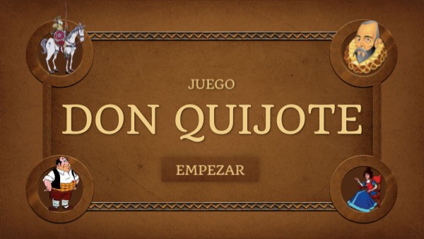 Es el personaje principal de la obra de Cervantes. Idealista y defensor de causas ajenas en nombre de la justicia, la defensa de los débiles, el honor y el amor. Se preocupa más de los demás que de sí mismo. Se arma caballero y sale en busca de aventuras para conquistar el corazón de su “inventada” amada Dulcinea. Era un hidalgo de unos cincuenta años, de complexión recia, seco de carnes, enjuto de rostro, gran madrugador y amigo de la caza. Se pasaba el día leyendo libros de caballerías.