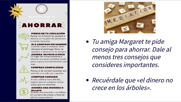 - Tu amiga Margaret te pide consejo para ahorrar. Dale al menos tres consejos que consideres importantes.