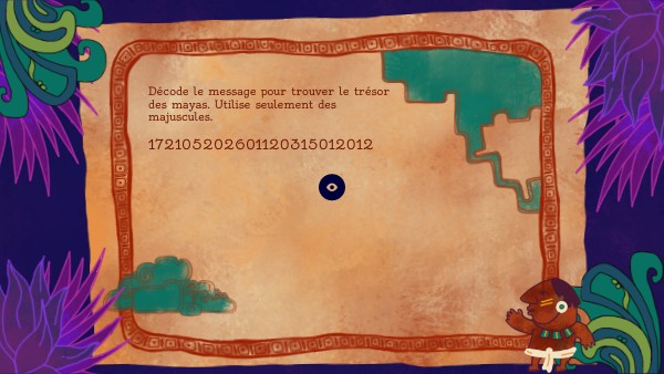 Décode le message pour trouver le trésor des mayas. Utilise seulement des majuscules.