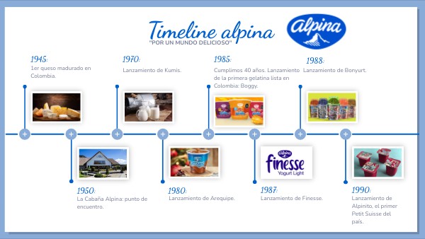 El 17 de julio de 2023, Alpina celebró su 78 aniversario. Durante estos años, la empresa ha consolidado su presencia en el mercado como una marca reconocida en el sector de alimentos y lácteos, destacándose por su calidad, innovación y compromiso con la sostenibilidad.