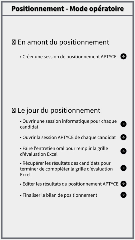 • Créer une session de positionnement APTYCE