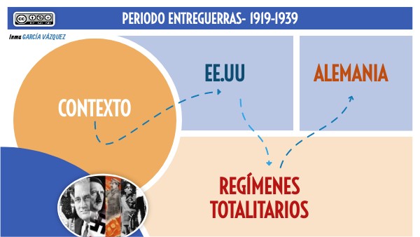 Posguerra muy dura. La República de Weimar fue incapaz de afrontar la crisis:Económica: costes de la guerra, limitación de la producción, hiperinflación. Política: radicalización, socialistas, anarquistas, comunistas, fascistas. 1924-Periodo de estabilidad de la República de Weimar gracias a: a-Se suavizan las condiciones de la deuda de la Guerra. b-EE.UU abre líneas de crédito que permite cierta recuperación económica.
