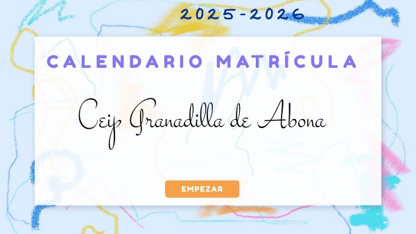 Alumnado que se matricule en el IES Granadilla de Abona: Formalizar la matrícula del 26 de junio al 8 de julio. Alumnado que elige otro instituto: Solicitud de plaza: 7 al 21 de abril. Formalizar matrícula: 26 de junio al 8 de julio Solicitud fuera de plazo: 26 de mayo a 18 de junio. Formalizar matrícula: 1 de julio a 8 de julio IMPORTANTE: Dentro de la documentación que se pide: - Renta y certificados de distancia para solicitar transporte. - Pedir cita en el Ayto si necesitaran certificado de situación económica crítica para libros y desayunos.