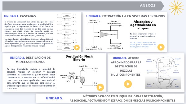 Es muy importante revises el material, lo estudies, realices un resumen y después contestes los cuestionarios que se tienen, estos cuestionarios no cuentan en la calificación del curso, pero son muy significativos en cuanto al conocimiento que se requiere para cursar la unidad de aprendizaje de Procesos de Separación por Etapas