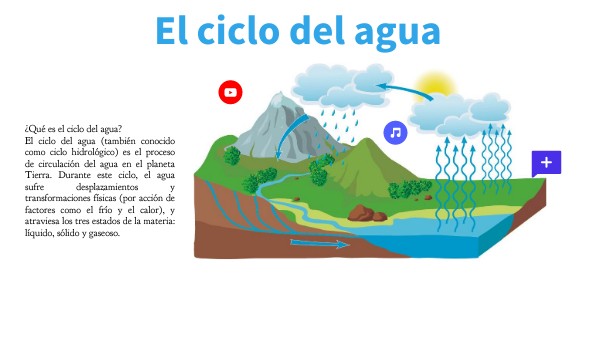 ¿Qué es el ciclo del agua? El ciclo del agua (también conocido como ciclo hidrológico) es el proceso de circulación del agua en el planeta Tierra. Durante este ciclo, el agua sufre desplazamientos y transformaciones físicas (por acción de factores como el frío y el calor), y atraviesa los tres estados de la materia: líquido, sólido y gaseoso.