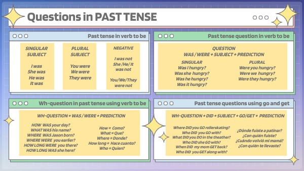 HOW WAS your day? WHAT WAS his name? WHERE WAS Jason born? WHERE WERE you earlier? HOW LONG WERE you there? HOW LONG WAS she here?
