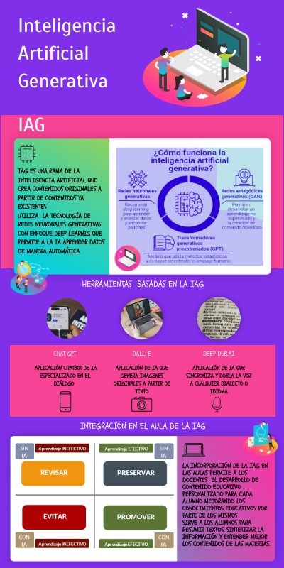 IAG ES UNA RAMA DE LA INTELIGENCIA ARTIFICIAL QUE CREA CONTENIDOS ORIGINALES A PARTIR DE CONTENIDOS YA EXISTENTESUTILIZA LA TECNOLOGÍA DE REDES NEURONALES GENERATIVAS CON ENFOQUE DEEP LEARNIG QUE PERMITE A LA IA APRENDER DATOS DE MANERA AUTOMÁTICA