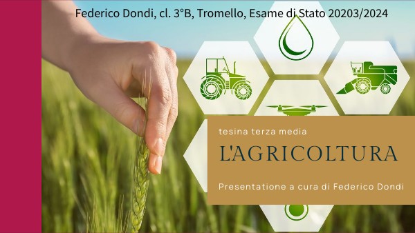 L'agricoltura è un'attività umana praticata fin dalla preistoria perchè su di essa si basa il sostentamento della popolazione mondiale, è un'attività del settore primario che viene praticata in ogni zona del Mondo escludendo ovviamente le zona artica e la zona dell'antartide.