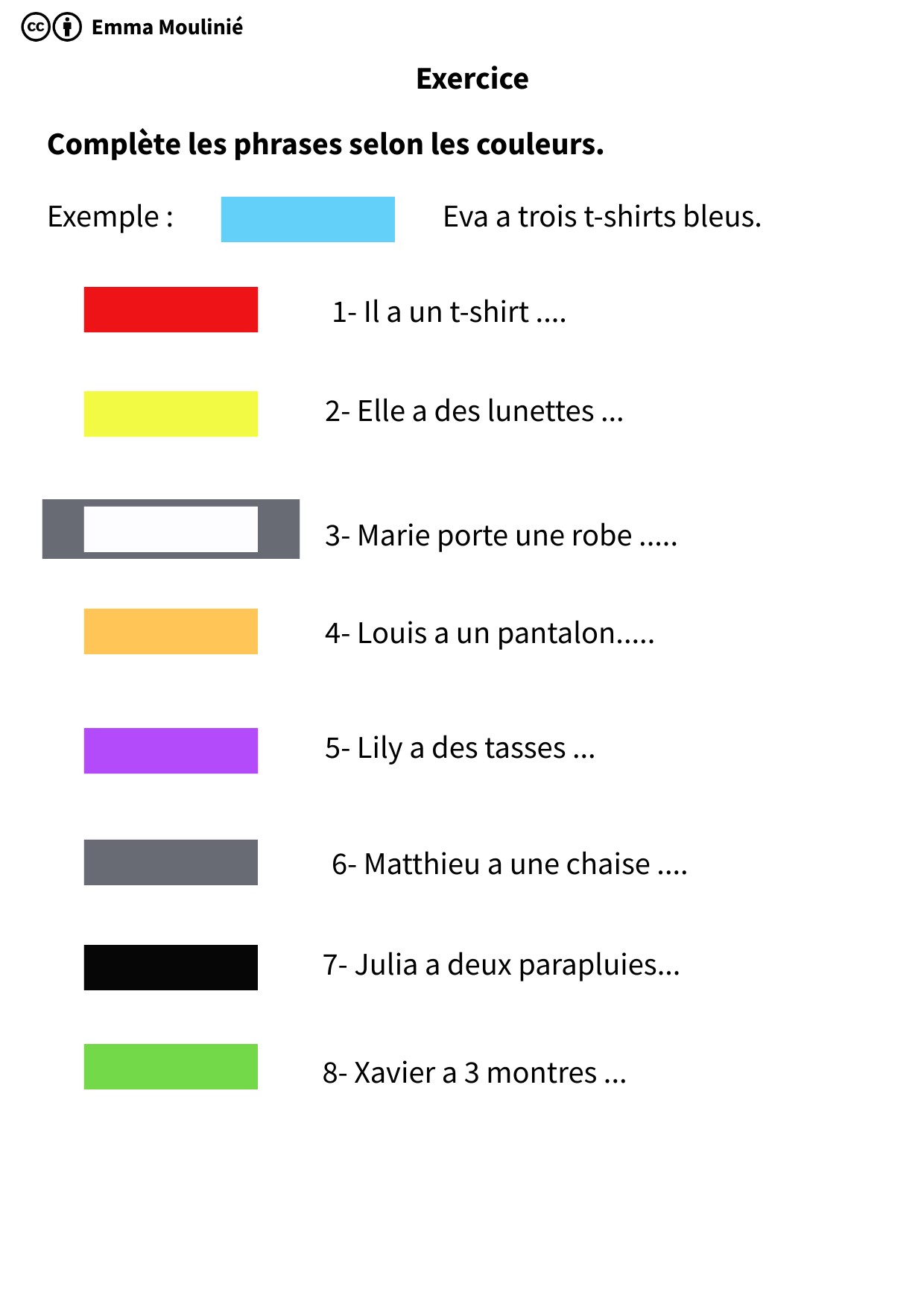 Complète les phrases selon les couleurs. Exemple :