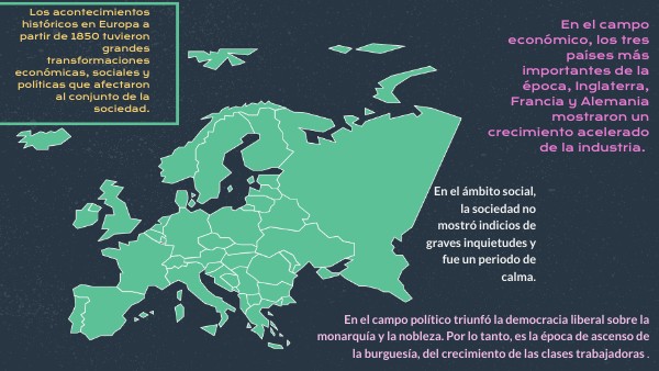 Los acontecimientos históricos en Europa a partir de 1850 tuvieron grandes transformaciones económicas, sociales y políticas que afectaron al conjunto de la sociedad.