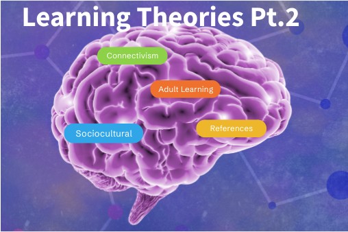 Main, Paul. (2023). Sociocultural Theory. Structural learning. https://www.structural-learning.com/post/sociocultural-theory O’Neill, Emma. (2024). What is adult learning theory? LearnUpon Blog. https://www.learnupon.com/blog/adult-learning-theory/#:~:text=Developed%20by%20Malcolm%20Knowles%20in,how%20it%20differs%20from%20children. WGU. (2021). Connectivism learning theory. https://www.wgu.edu/blog/connectivism-learning-theory2105.html#:~:text=Connectivism%20was%20first%20introduced%20in,was%20published%20the%20following%20year.