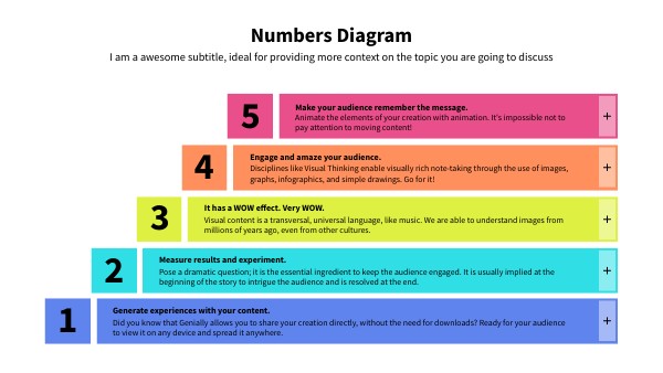 With Genially templates, you'll be able to include visual resources to leave your audience amazed. You can also highlight specific phrases or facts that will be etched into your audience's memory, and even embed external content that will surprise them: videos, photos, audios... Whatever you want!