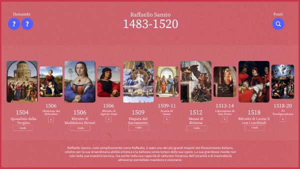 Cricco G., Di Teodoro F., Itinerario nell'arte, Quarta edizione, Dal Gotico Internazionale al Manierismo, Versione arancione, Bologna, Zanichelli Editore, 2017, 448 p.https://arteinbreve.it/raffaello-sanzio-biografia-stile-e-opere-principali/ https://www.raicultura.it/webdoc/raffaello/ https://www.finestresullarte.info/arte-base/raffaello-la-vita-le-opere-i-capolavori