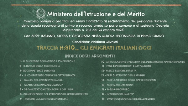 Concorso ordinario per titoli ed esami finalizzato al reclutamento del personale docente della scuola secondaria di primo e secondo grado su posto comune e di sostegno (Decreto Ministeriale n. 205 del 26 ottobre 2023) Cdc A022: ITALIANO, STORIA E GEOGRAFIA NELLA SCUOLA SECONDARIA DI PRIMO GRADO Candidata: Viridiana Silvestri