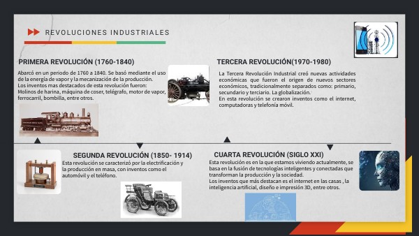 La Tercera Revolución Industrial creó nuevas actividades económicas que fueron el origen de nuevos sectores económicos, tradicionalmente separados como: primario, secundario y terciario. La globalización.En esta revolución se crearon inventos como el internet, computadoras y telefonía móvil.
