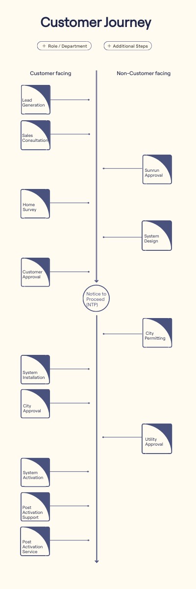 Every Sunrun customer starts as a lead. Think of a lead as a homeowner who has some level of interest in learning more about installing solar and storage on their home. Some leads come to us by inquiring from online ads, our website, or by calling us. However, most of our leads come through us engaging with homeowners.