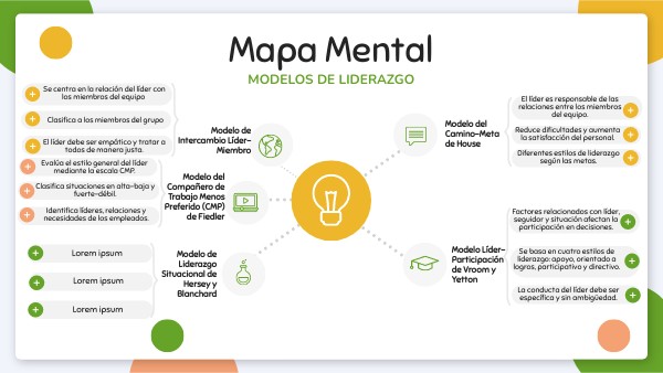 Mapa mental con los diferentes modelos de liderazgo y sus principales caracteristicas de cada uno