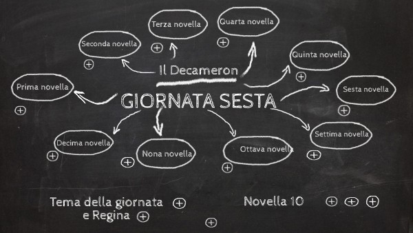 La sesta giornata, la quale cade di mercoledì, ha il tema delle risposte pronte e argute che permettono di togliersi d'impaccio o da una situazione pericolosa. Il raccontare, l’uso della parola, insomma l’attività principale dei membri della brigata viene illustrata soprattutto in questa giornata centrale del „Decameron", nella quale agiscono personaggi interessanti che sanno parlare. È importante partire dal tema del motto (il motto è uno strumento che serve al protagonista per difendersi) perché è esso che fa scaturire una serie di elementi che caratterizzano tutte le novelle della VI giornata, in particolare alla struttura narrativa.