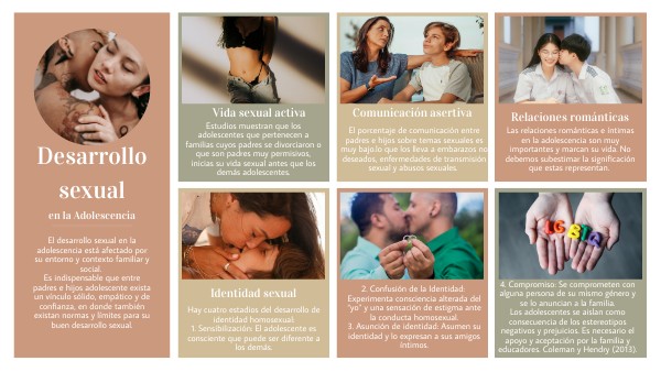 El desarrollo sexual en la adolescencia está afectado por su entorno y contexto familiar y social. Es indispensable que entre padres e hijos adolescente exista un vínculo sólido, empático y de confianza, en donde también existan normas y límites para su buen desarrollo sexual.