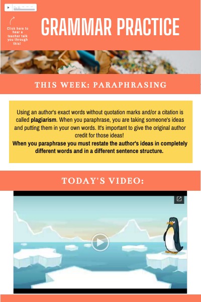6th Grammar practice - Paraphrasing