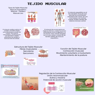 El músculo cardíaco está en el corazón y bombea sangre automáticamente a través del cuerpo. Tiene discos intercalados y ramificaciones que permiten la rápida transmisión de señales el éctricas entre las células.