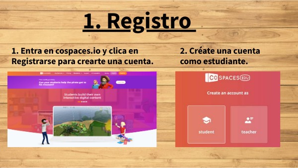 1. Entra en cospaces.io y clica en Registrarse para crearte una cuenta.