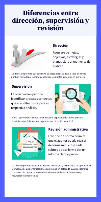 Infografía, diferencias entre dirección, supervisión y revisión.