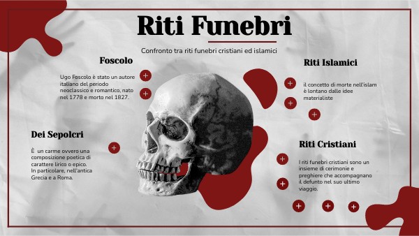 Da un lato, egli ritiene che i riti funebri siano un segno di civiltà e un modo per onorare la memoria dei defunti.Dall'altro lato, Foscolo critica le eccesive ostentazioni e il materialismo che spesso caratterizzano i riti funebri.